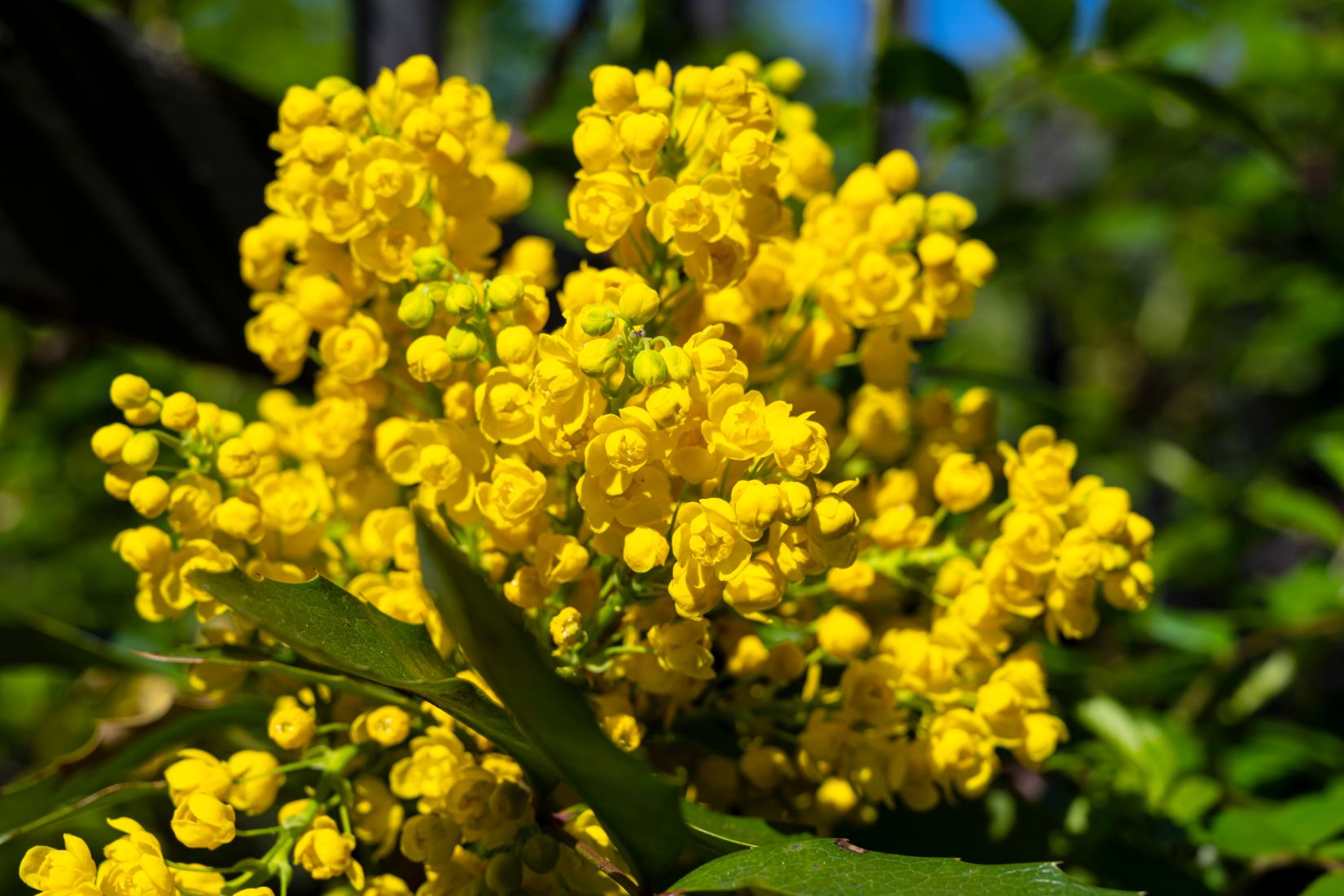 - Mahonia (Mahonia): Mahonia is a genus of evergreen shrubs that produce clusters of fragrant, yellow flowers in late winter or early spring, attracting early emerging bees and other pollinators.